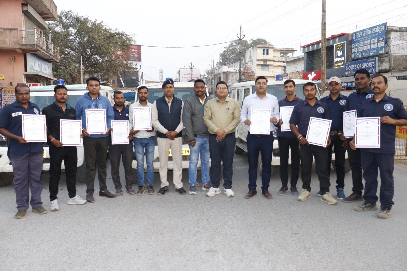 рдЙрдк рдкреБрд▓рд┐рд╕ рдорд╣рд╛рдирд┐рд░реАрдХреНрд╖рдХ рдПрд╡рдВ рд╡рд░рд┐рд╖реНрда рдкреБрд▓рд┐рд╕ рдЕрдзреАрдХреНрд╖рдХ рд╕рд░рдЧреБрдЬрд╛ рд╢реНрд░реА рд░рд╛рдЬреЗрд╢ рдХреБрдорд╛рд░ рдЕрдЧреНрд░рд╡рд╛рд▓ (рднрд╛.рдкреБ.рд╕реЗ.) рдХреЗ рдирд┐рд░реНрджреЗрд╢рди рдореЗрдВ рдЖрдпреЛрдЬрд┐рдд рдЗрд╕ рдХрд╛рд░реНрдпрдХреНрд░рдо рдореЗрдВ 102 рдорд╣рддрд╛рд░реА рдПрдХреНрд╕рдкреНрд░реЗрд╕ рдПрд╡рдВ рдбрд╛рдпрд▓-112 рдХреЗ 8 рд╡рд╛рд╣рди рдЪрд╛рд▓рдХреЛрдВ рд╡ рдЙрдирдХреЗ рдкреНрд░рдмрдВрдзрдХреЛрдВ рдХреЛ рд╕рдореНрдорд╛рдирд┐рдд рдХрд┐рдпрд╛ рдЧрдпрд╛ред рдЪрдпрдирд┐рдд рдЪрд╛рд▓рдХреЛрдВ рдХреЛ рд╢рд╛рд▓, рд╢реНрд░реАрдлрд▓ рдПрд╡рдВ рдкреНрд░рд╢рд╕реНрддрд┐ рдкрддреНрд░ рдкреНрд░рджрд╛рди рдХрд░ рдкреНрд░реЛрддреНрд╕рд╛рд╣рд┐рдд рдХрд┐рдпрд╛ рдЧрдпрд╛ред